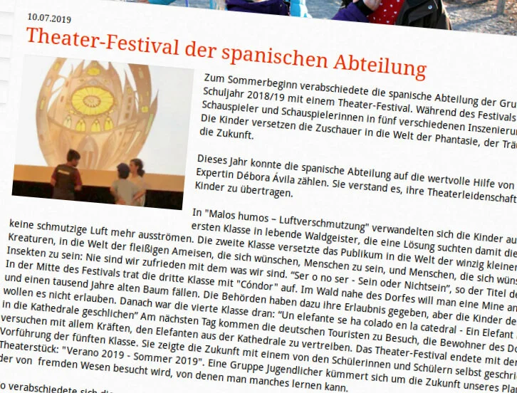 Desde el año 2015 imparto un Aula de Teatro en la Escuela Europea de Múnich para la sección española. Los cinco cursos de primaria preparan una obra de teatro que muestran a sus familiares y amigos en la fiesta de final de curso.